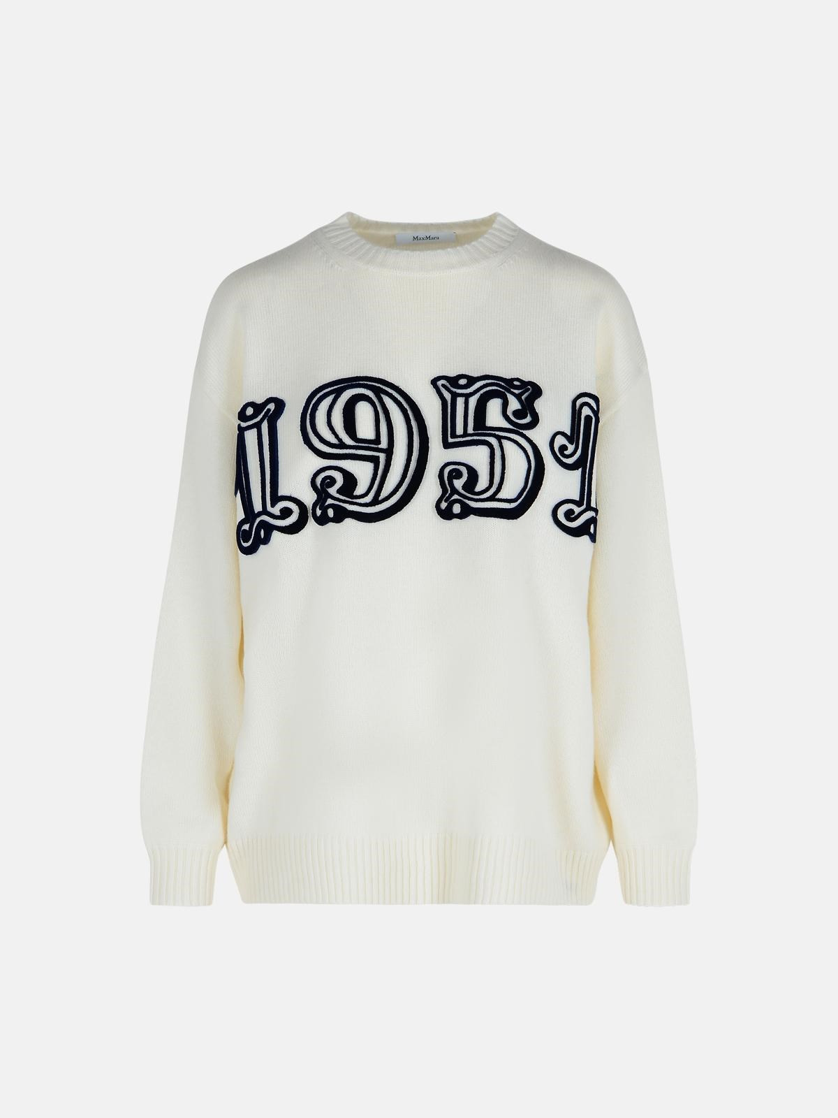 Manufacture code: 2521366212 014 Retail code: 2521366212 014 Wool and cachemire yarn sweater, oversized volume, crew neck, long sleeves with low turn, ribbed trims, maxi 1951 lettering in blue contrast velvet front Main: 70% wool, 30% cashmere Made in Italy
