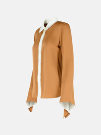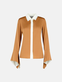 Manufacture code: 2511111021 003 Retail code: 25111110021 003 Classic contrast collar, concealed button closure, double back central crease, draping cuffs, straight hem Main: 100% silk Made in Italy