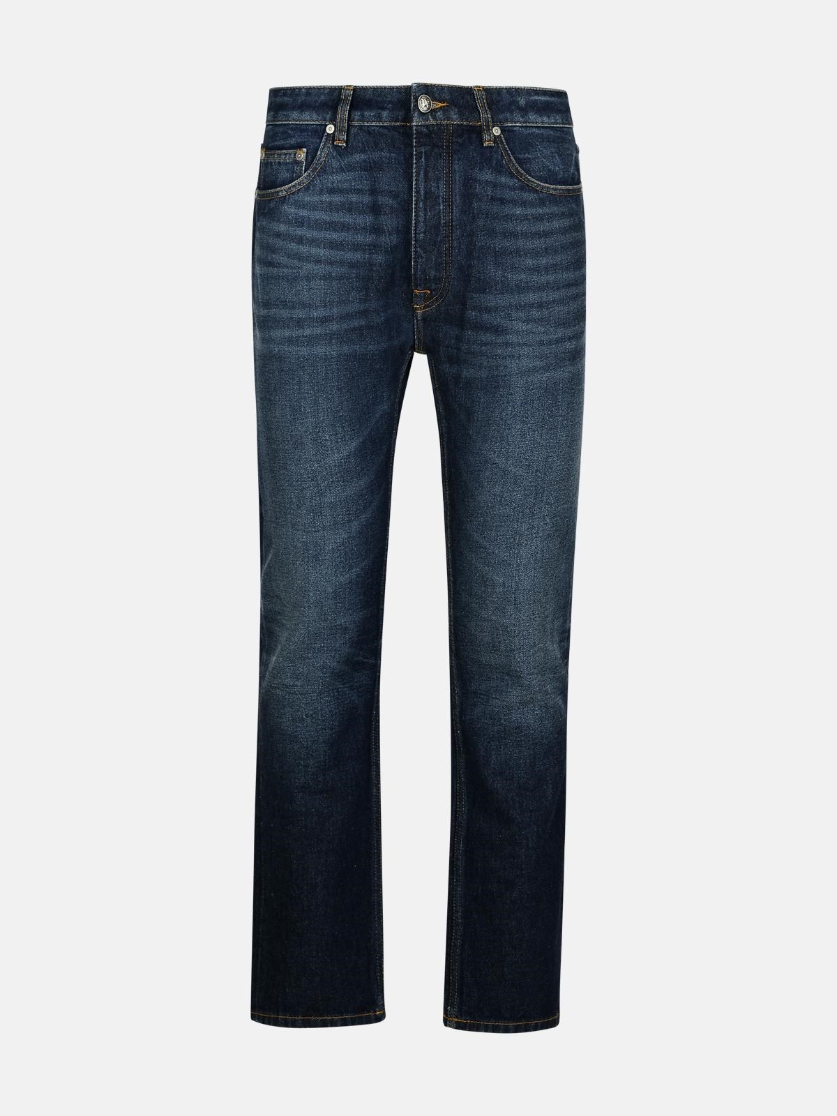Manufacture code: PMYA039F24DEN002 4503 Retail code: PMYA039F24DEN002 4503 Belt loops, five-pocket style, contrast double needle stitching, button closure and flap concealed zip, washed effect, straight leg, leather logo tag, logo on the back Main: 100% cotton Made in Romania