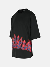 'FLAMES' BLACK COTTON T-SHIRT