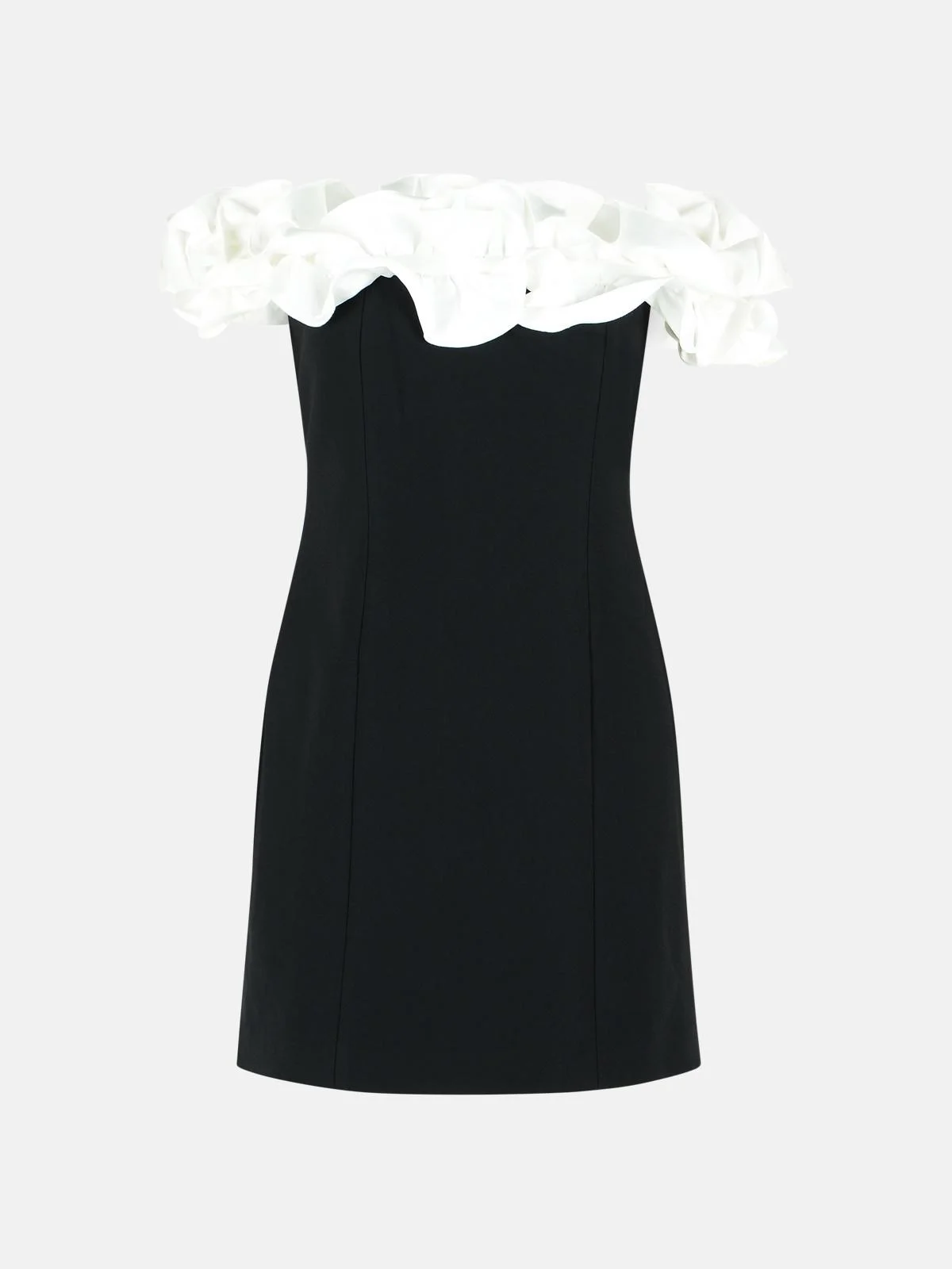 MINI DRESS WITH RUFFLES IN BLACK AND WHITE POLYESTER