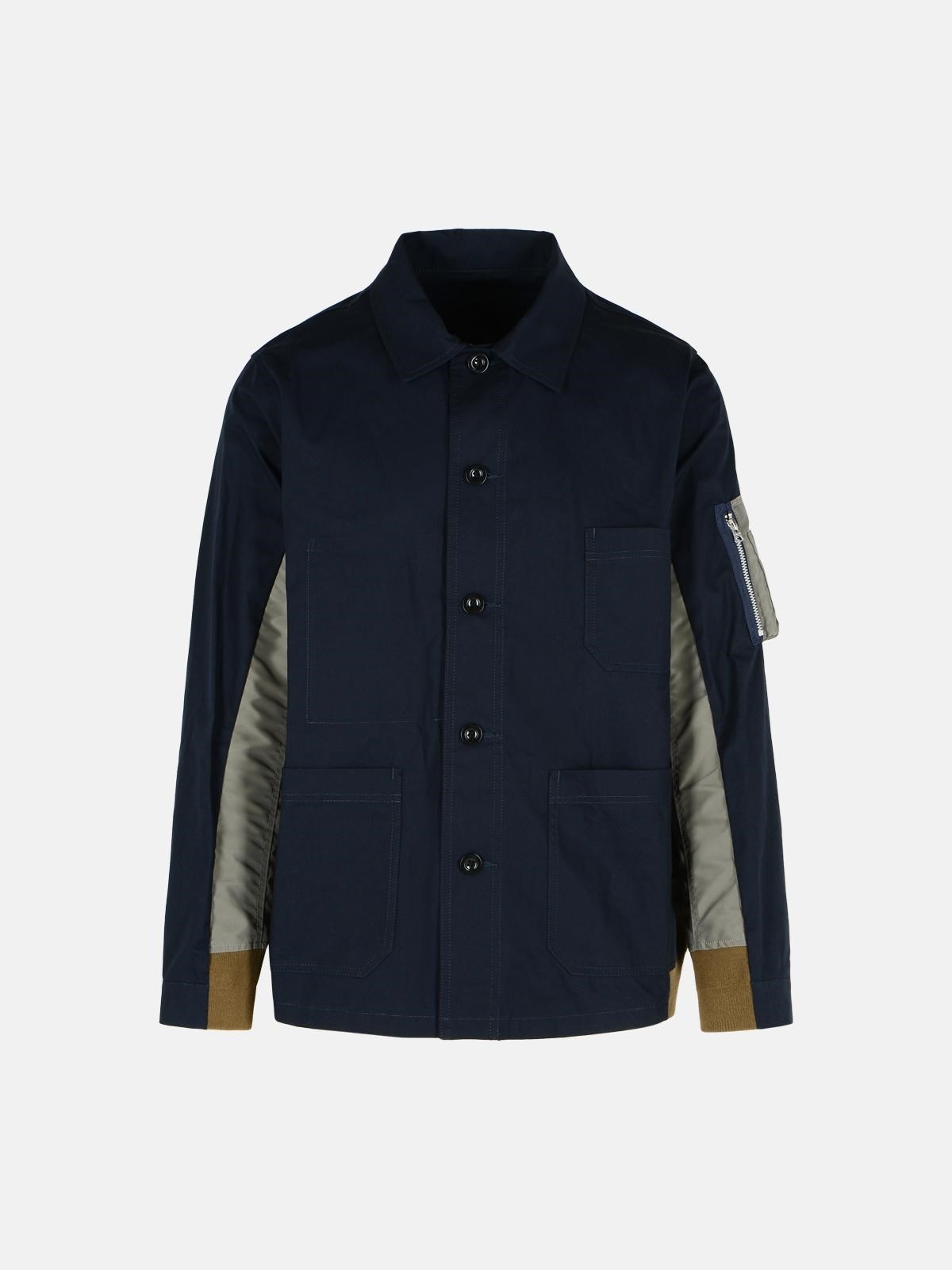 Manufacture code: SCM-245 234 Retail code: SCM-245 234 Pointed collar, button closure, three front patch pockets, one zip sleeve pocket, contrast nylon inserts, side zip slits, ribbed insert hem Main: 70% cotton, 30% polyester Made in Japan