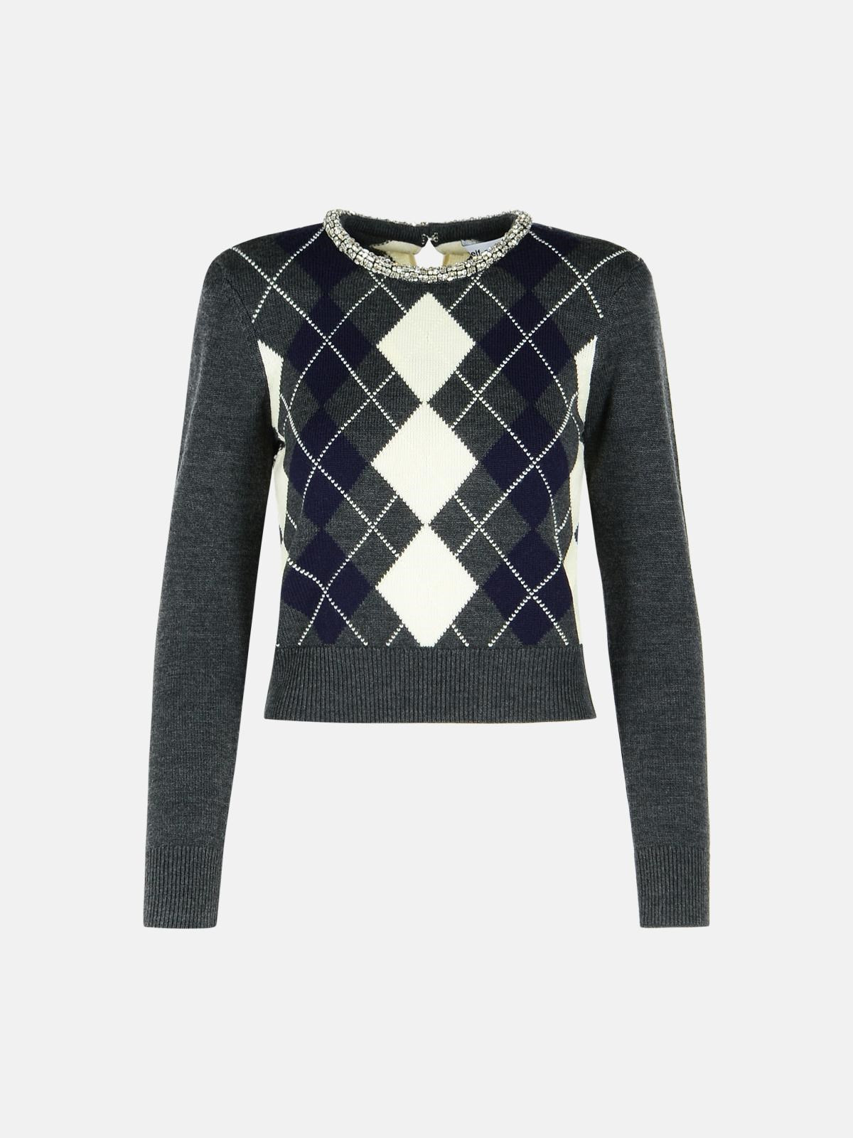 'ARGYLE CRYSTAL' GREY WOOL SWEATER