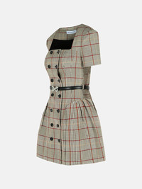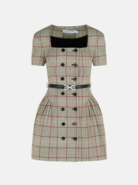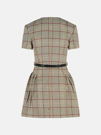 Manufacture code: AW25-082SA-BR BROWN Retail code: AW25-082SA-BR BROWN Made of brown check twill, rhinestone bow belt, tight fit, button closure on the front, curled skirt on the sides Main: 62% wool, 38% polyester Made in China
