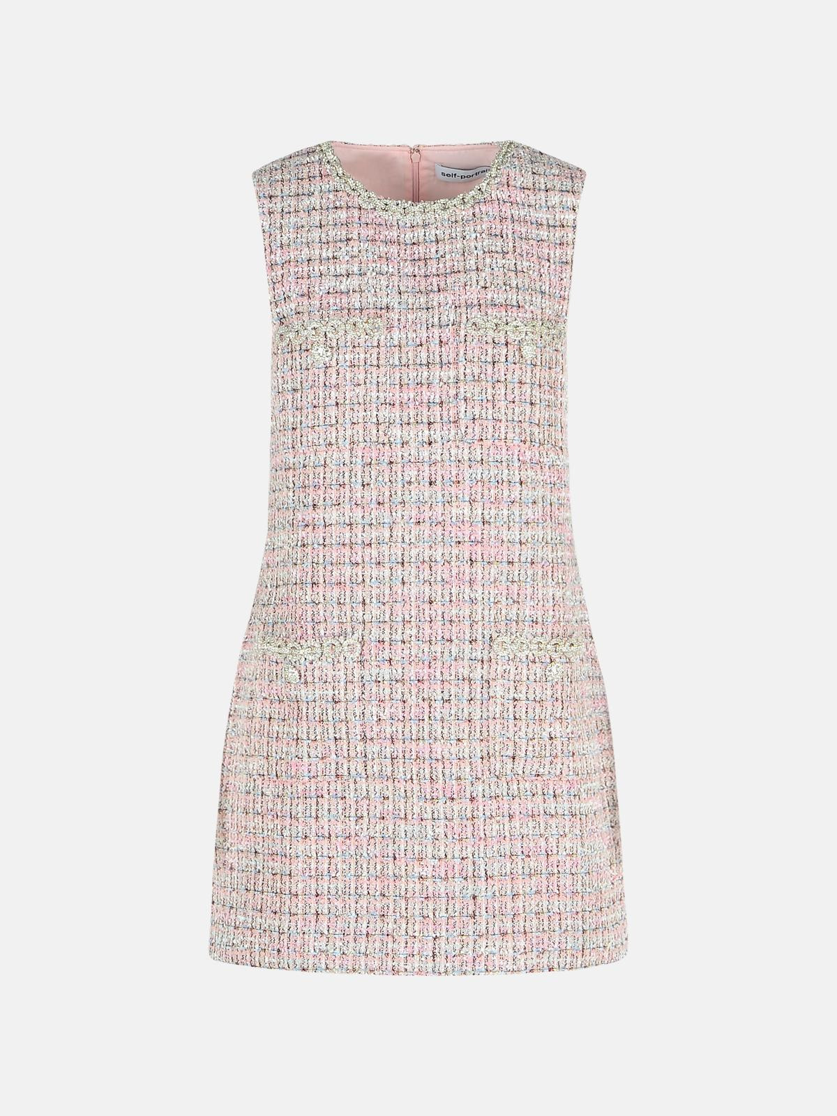Manufacture code: AW25-098S-P PINK Retail code: AW25-098S-P PINK Tight fit, minimal elongation, back zip closure, rhinestone trim, functional pockets, sheath silhouette Main: 85% polyester, 10% wool, 5% viscose Made in China