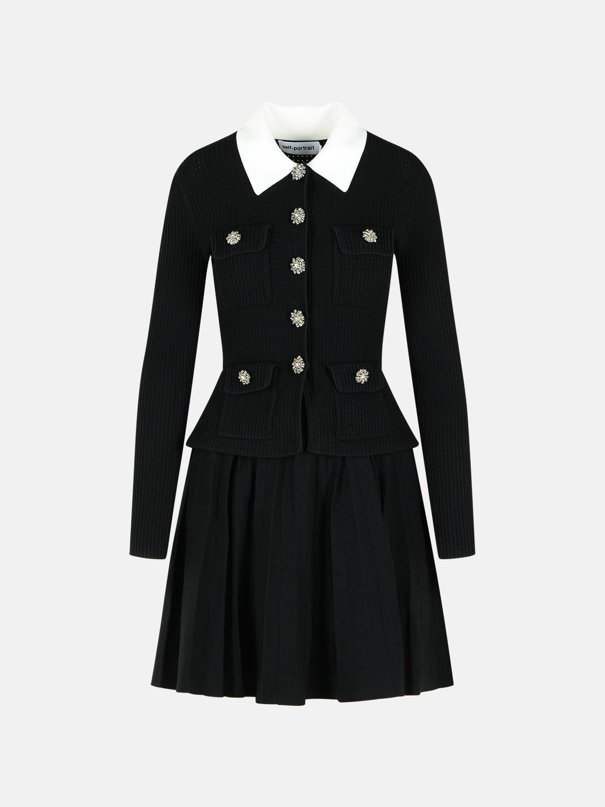 Manufacture code: RS26-109S-B BLACK Retail code: RS26-109S-B BLACK Contrast pointed collar, ribbed top finish, invisible button closure, four flap and snap button pockets, pleated skirt Main: 73% viscose, 16% polyester, 10% nylon, 1% elastane Made in China