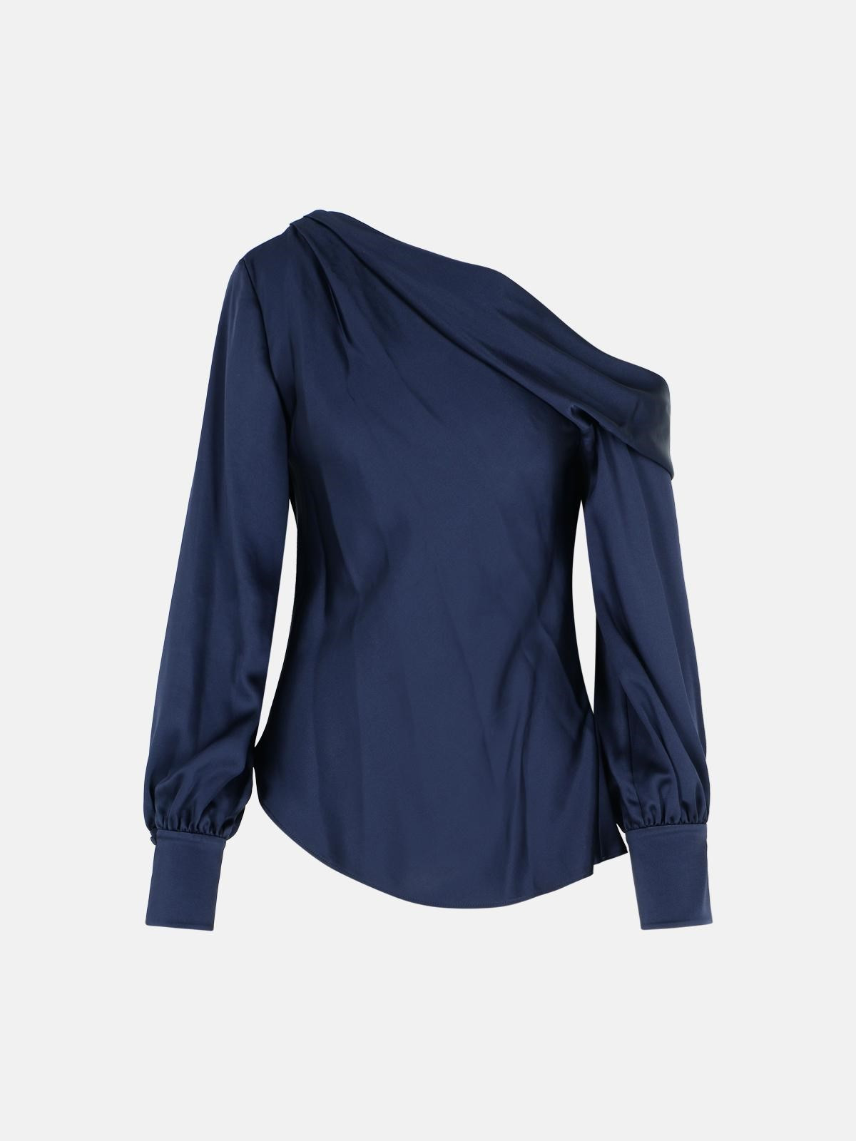 'ALICE' NAVY ACETATE BLEND BLOUSE