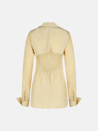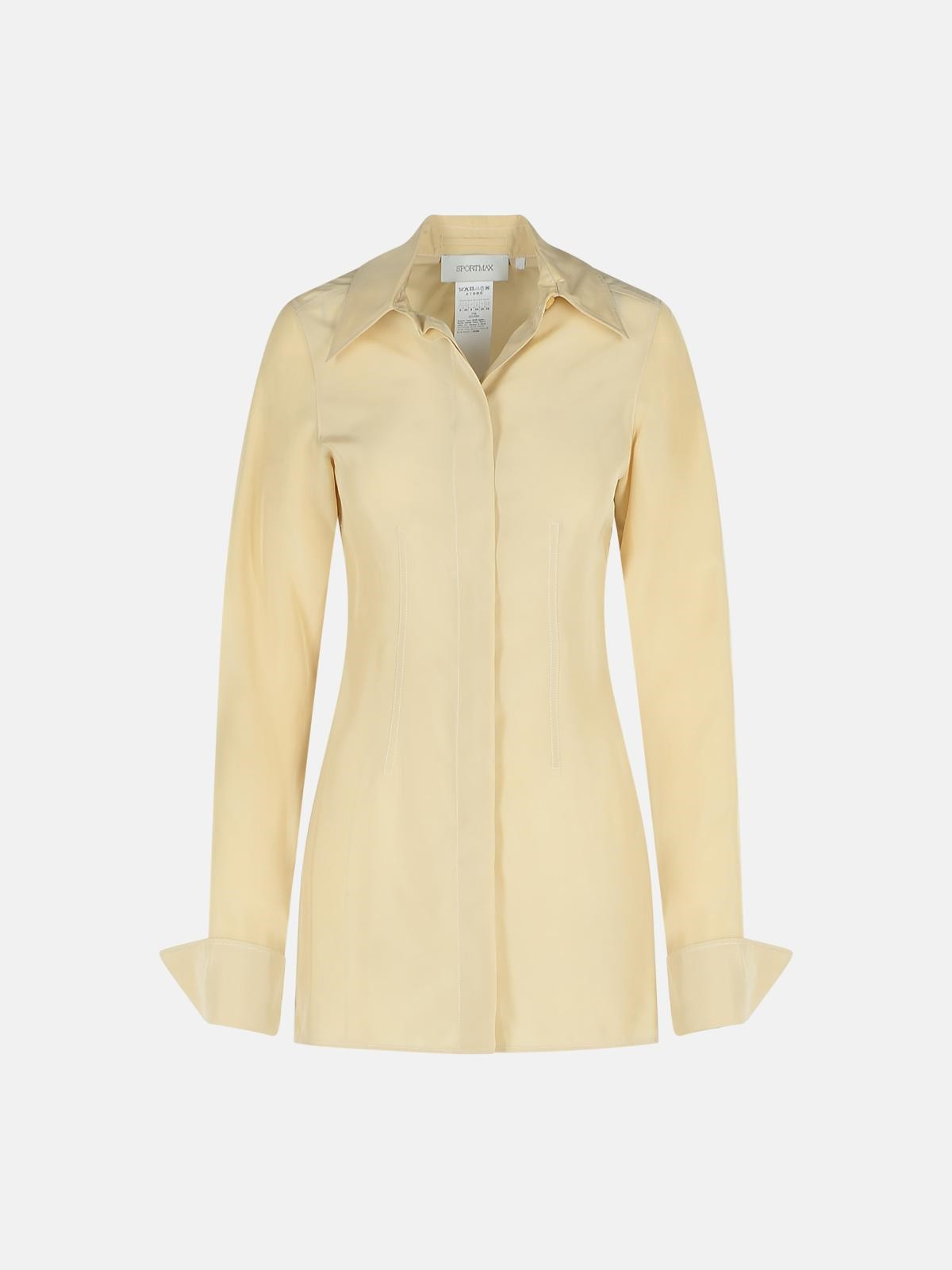 Manufacture code: 2512191022 001 Retail code: 2512191022 001 Pointed collar, button closure, finished cuffs, rulit at the back with curling Main: 100% viscose Made in Italy
