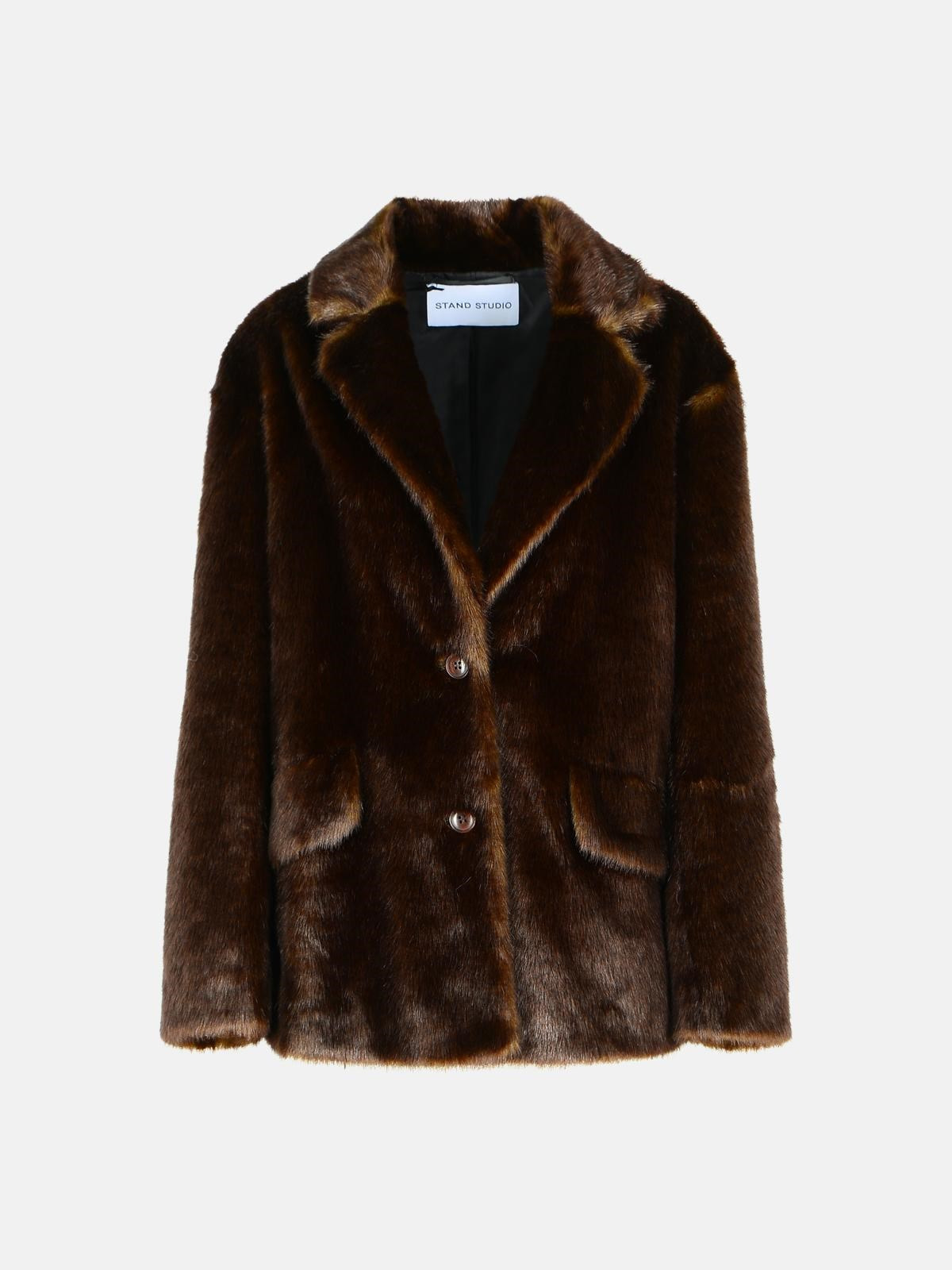 'EVYN' DARK BROWN FAUX FUR JACKET