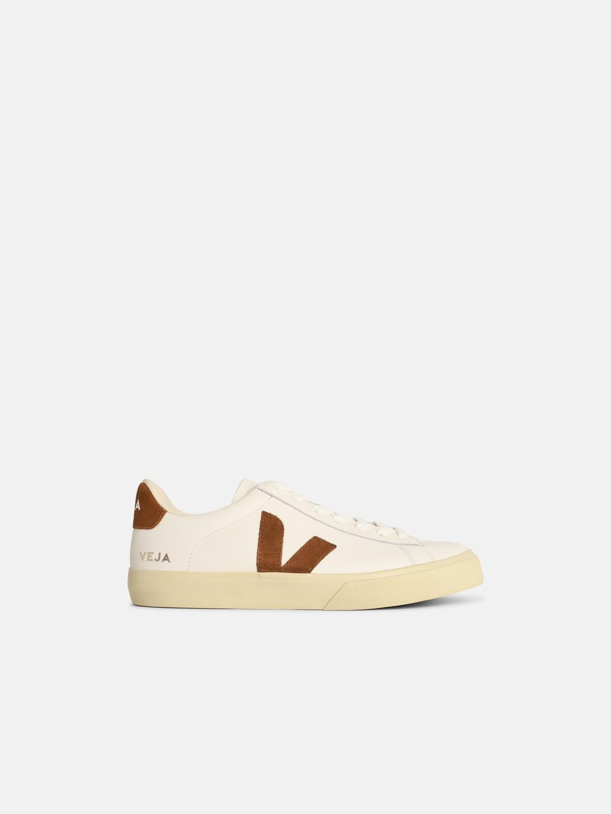 Manufacture code: CP0521058 WHITE_COGNAC Retail code: CP0521058 WHITE_COGNAC Matching flat laces, V-shaped side inserts in contrast cognac suede, printed suede cognac logo heel, and logo rubber sole Main: 100% calf leather Made in Brazil
