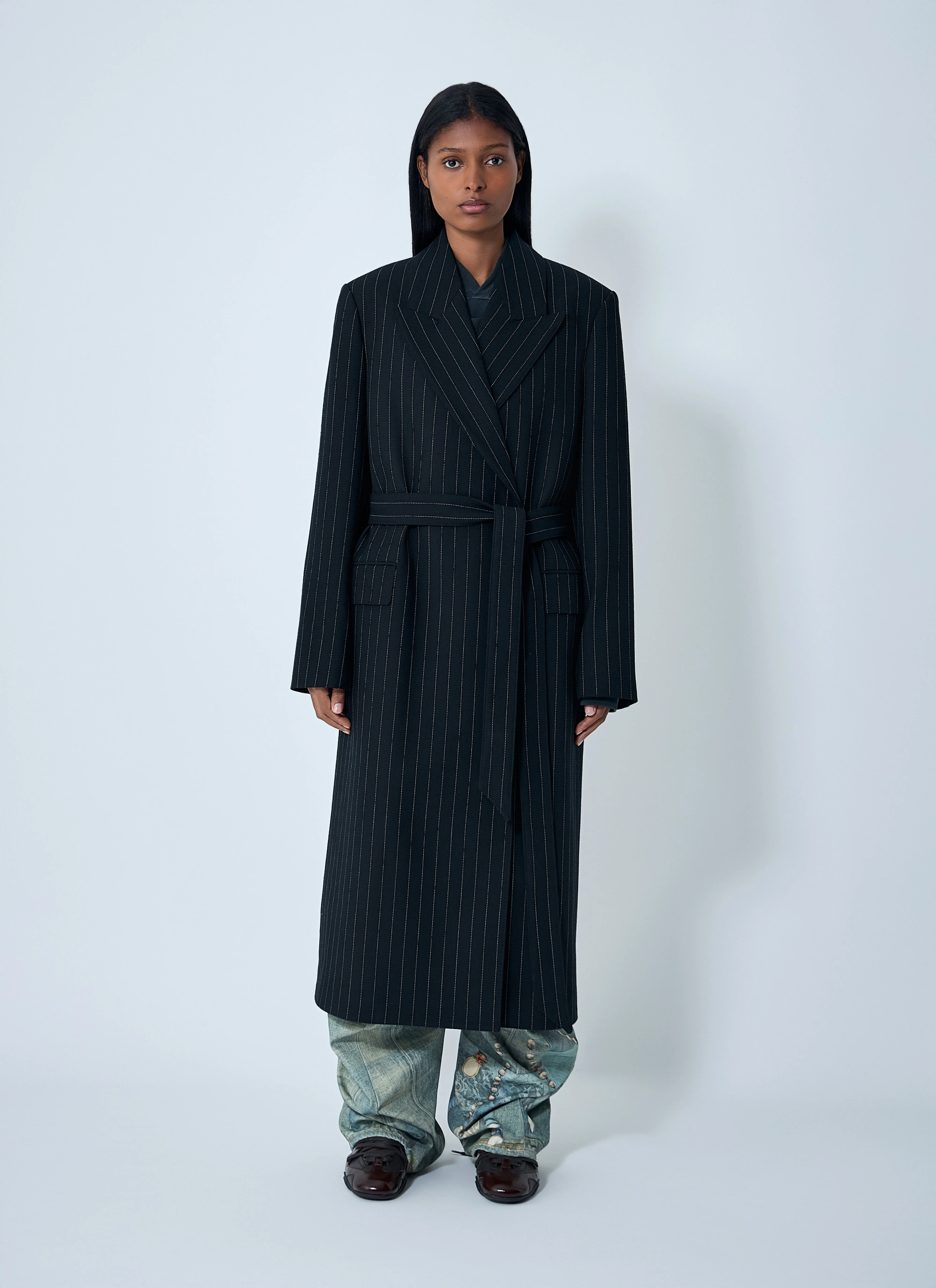Acne Studios Women Belted Pinstripe Coat