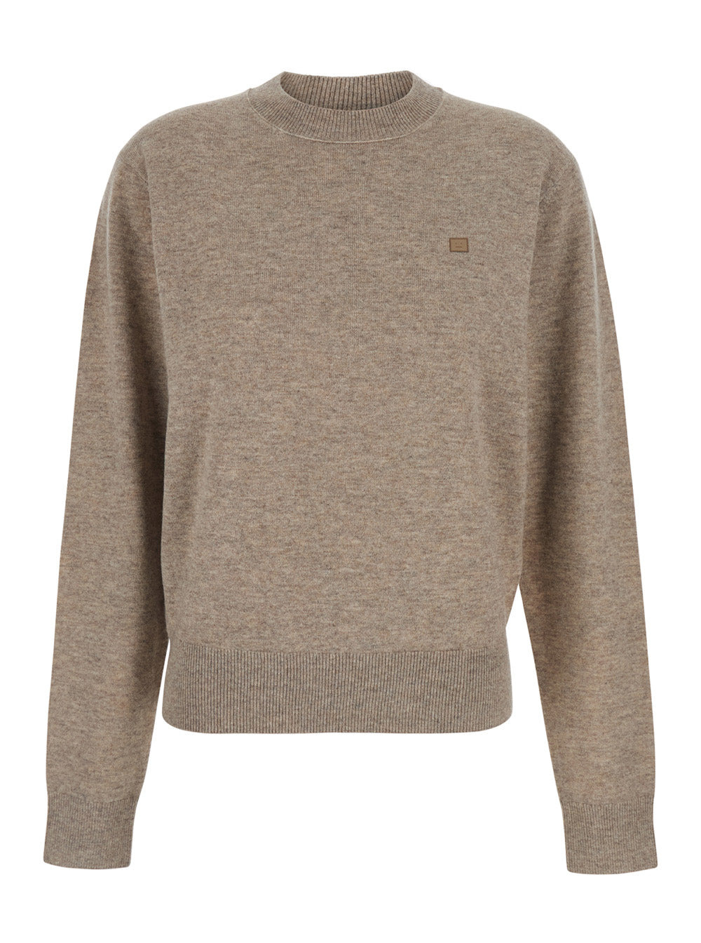 Acne Studios Women 'Kalas' Beige Crewneck Sweater With Logo Patch On The Front In Wool Blend Woman