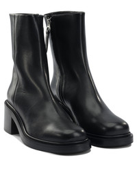 Aeyde's "Teddy" ankle boots with thick block heel structure, crafted from hand-tufted leather. Silhouette features rounded contours and a slightly squared toe. Construction designed for support and stability, with materials chosen for wear resistance. Visible stitching details define the lines of the upper. Design features marked structural elements and balanced proportions. || - Calf leather upper - Thick block heel - Square toe - Rounded contours - Rubber sole for grip and durability - Leather-lined interior - Side zipper closure 100% leather - 70% leather 30% rubber SKU: TEDDYCALFLEATHERBLACK Our Products Are 100% Genuine. In All Cases We Stand By The Authenticity Of Every Product Sold On Our Site. All sales are final and we only accept returns for quality issue. Buyer is responsible for any import tax/duty if applicable.