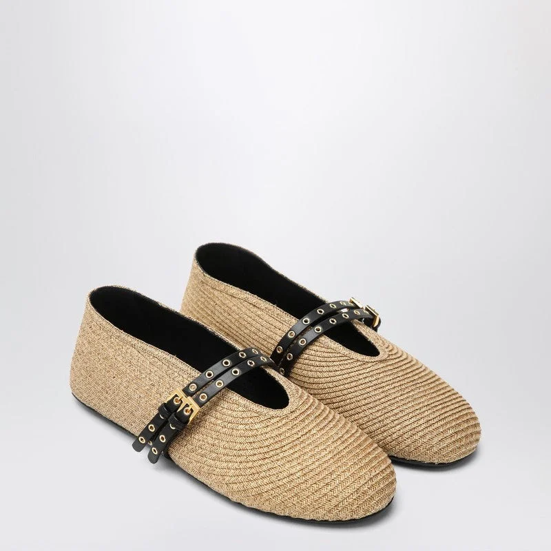 Alaia Flat Ballerinas Natural Colour In Paper Straw Women