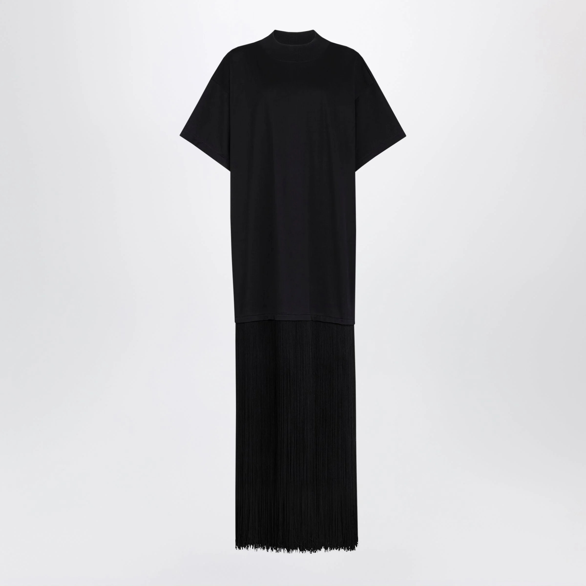 Alaia Fringed Dress In Black Cotton Jersey Women