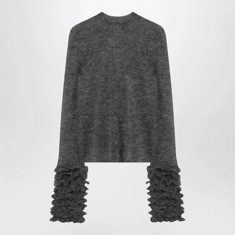 Alaia Grey Mohair-Blend Sweater With Ruffles Women