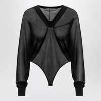 Alaia Hooded Black Bodysuit In Fine Knit Women