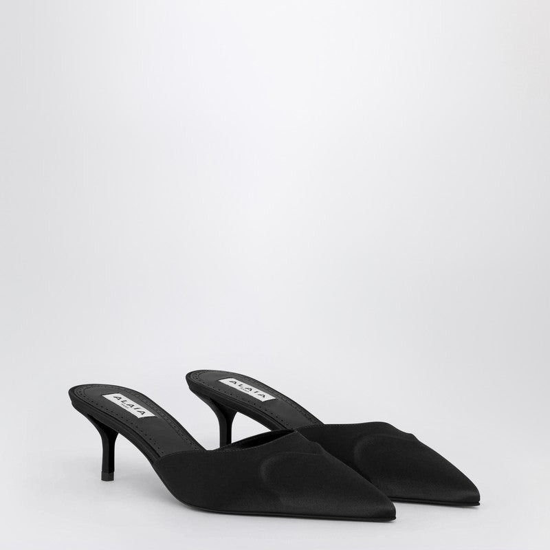 Alaia Le Coeur Mule In Black Satin Women