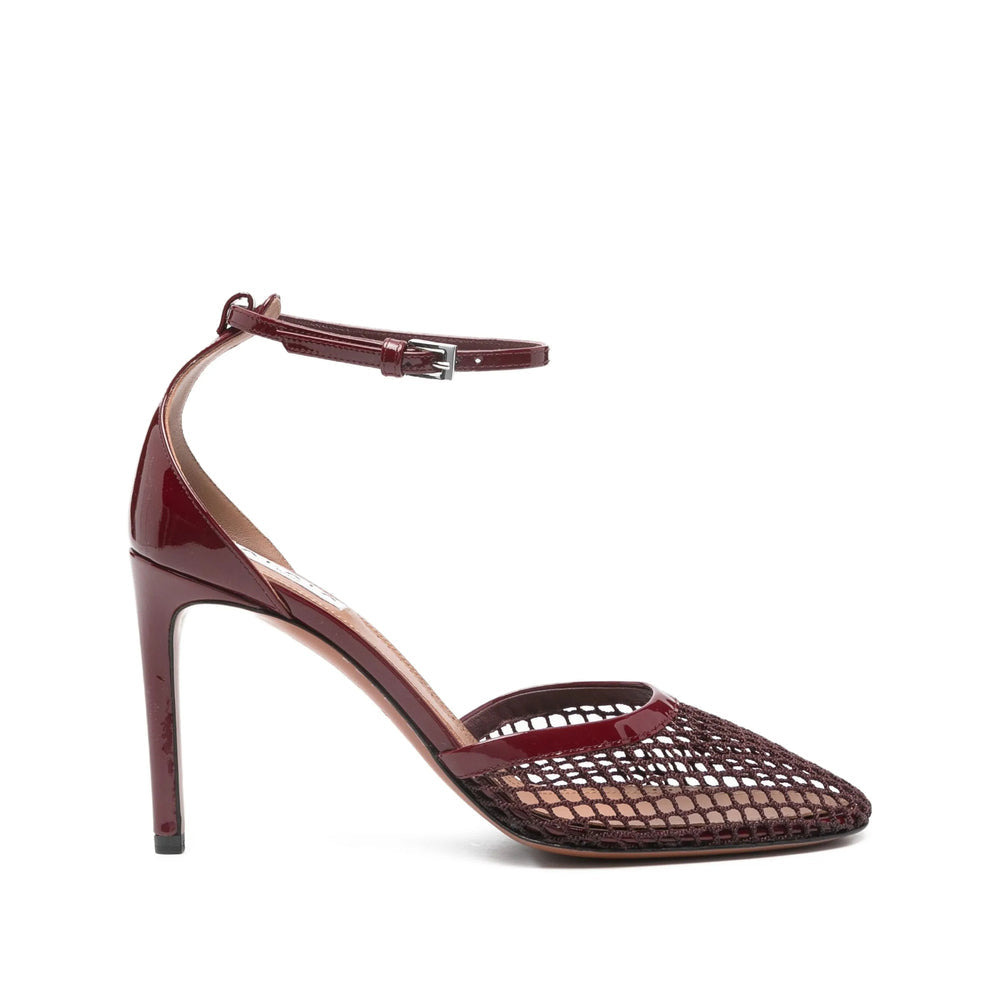 burgundy mesh panel leather trim stiletto heel ankle strap buckle fastening MADE IN:ItalyMATERIAL:Lining Composition Calf Leather: 100.0%, Sole Composition Calf Leather: 100.0%, Sole Composition Rubber: 100.0%, Outer Composition Fabric: 100.0%, Outer Composition Patent Calf Leather: 100.0%COLOR:RED SKU: AA3E049TK007325 Our Products Are 100% Genuine. In All Cases We Stand By The Authenticity Of Every Product Sold On Our Site. All sales are final and we only accept returns for quality issue. Buyer is responsible for any import tax/duty if applicable.