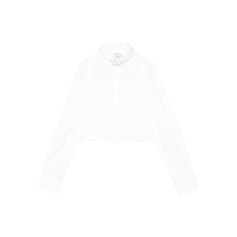 white ruffled high neck long sleeves button fastening cropped hem MADE IN:ItalyMATERIAL:Cotton: 100.0%COLOR:WHITE SKU: AA9C0996T611B000 Our Products Are 100% Genuine. In All Cases We Stand By The Authenticity Of Every Product Sold On Our Site. All sales are final and we only accept returns for quality issue. Buyer is responsible for any import tax/duty if applicable.