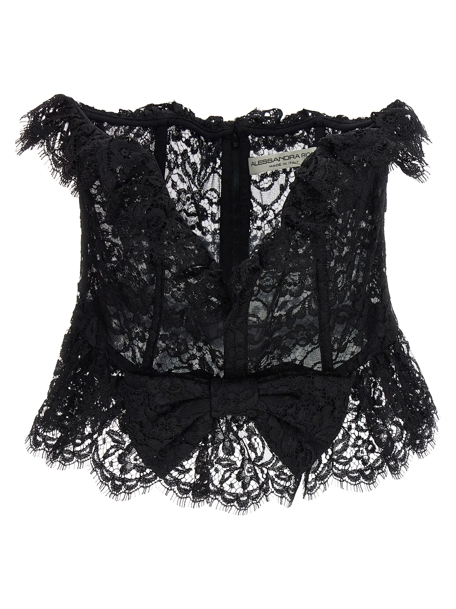 Lace bustier top with bow at the front, off-the-shoulder style with back zip closure. true to size fit 60% polyamide 20% cotton 20% viscose SKU: FABX39370900 Our Products Are 100% Genuine. In All Cases We Stand By The Authenticity Of Every Product Sold On Our Site. All sales are final and we only accept returns for quality issue. Buyer is responsible for any import tax/duty if applicable.
