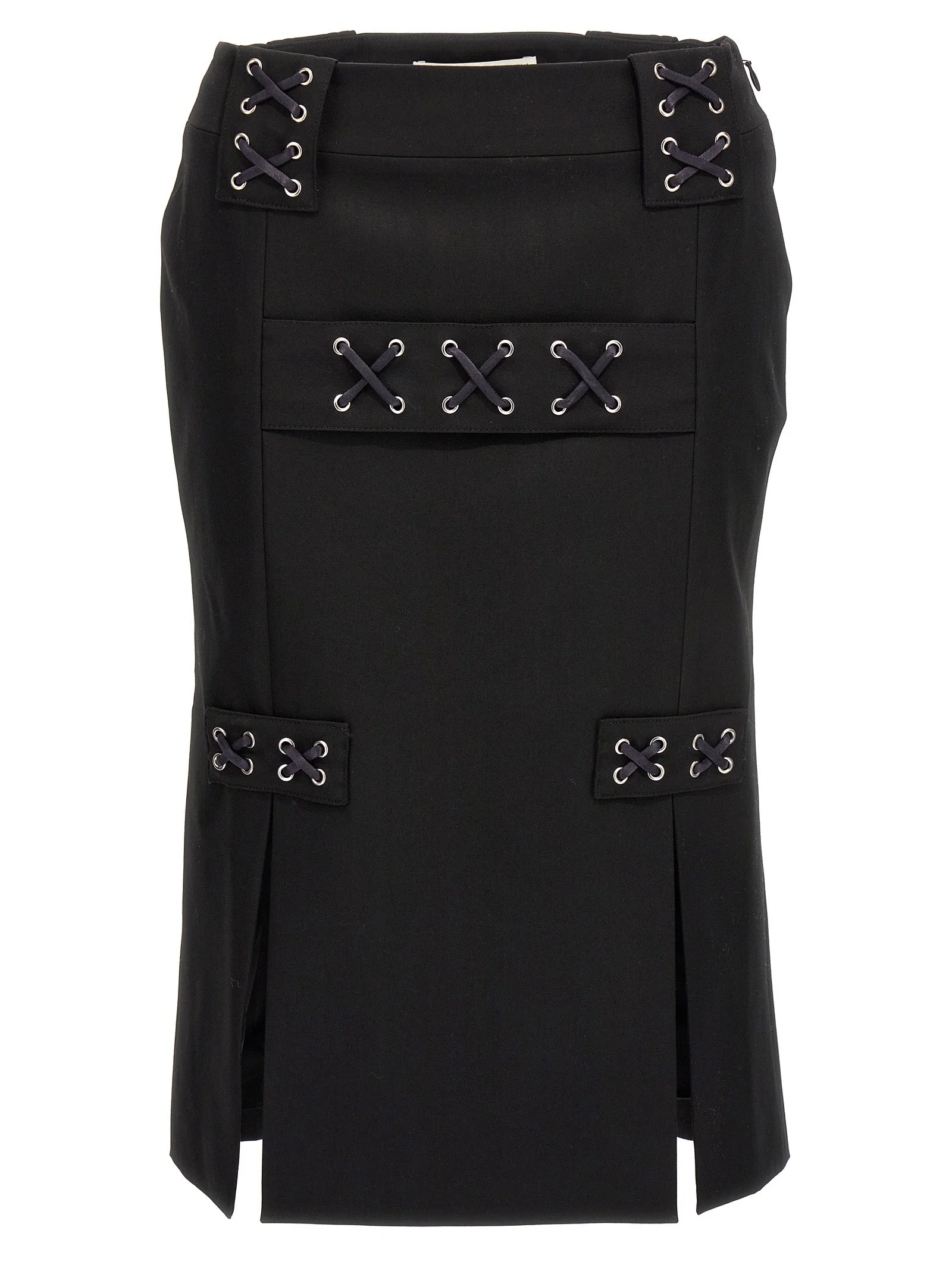 Wool blend skirt with lace detail, side zip closure, back slit and front splits. true to size fit 70% WO 30% EA SKU: FAB3424F4055900 Our Products Are 100% Genuine. In All Cases We Stand By The Authenticity Of Every Product Sold On Our Site. All sales are final and we only accept returns for quality issue. Buyer is responsible for any import tax/duty if applicable.