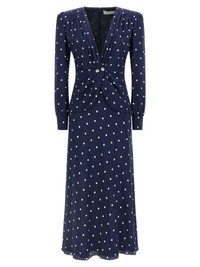 All-over polka dot silk twill midi dress consisting of blazer top with pin tucks, ruffles, V-neck, front jewel button detail, long sleeves with crinkled shoulder strap and cuff, A-line silhouette skirt, petticoat, and back zip closure. true to size fit 100% silk SKU: FABX4108F46551643 Our Products Are 100% Genuine. In All Cases We Stand By The Authenticity Of Every Product Sold On Our Site. All sales are final and we only accept returns for quality issue. Buyer is responsible for any import tax/duty if applicable.