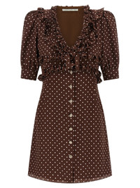Polka Dot Mini' polka dot silk dress with ruffles at the top, V-neck, front jewel button closure, short puff sleeves with cuffs, lining. true to size fit 100% silk SKU: FABX4297F46861659 Our Products Are 100% Genuine. In All Cases We Stand By The Authenticity Of Every Product Sold On Our Site. All sales are final and we only accept returns for quality issue. Buyer is responsible for any import tax/duty if applicable.