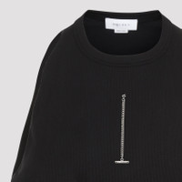 Alexander McQueen Black Cotton Top. Black ribbed stretch cotton, round neckline, sleeveless with draped low-cut armholes, silver-tone metal chain with cross-bar detail on the front, straight hem. Cotton | 97%COTTON 3%ELASTANE Size Type: IT SKU: 804191QLADWBlack Our Products Are 100% Genuine. In All Cases We Stand By The Authenticity Of Every Product Sold On Our Site. All sales are final and we only accept returns for quality issue. Buyer is responsible for any import tax/duty if applicable.