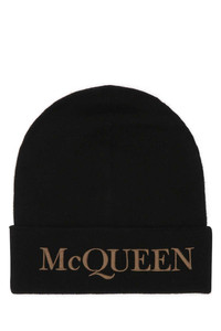 Alexander Mcqueen Men Black Cashmere Beanie Hat