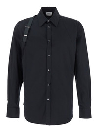 Alexander Mcqueen Men 'Harness' Black Shirt With Clasic Collar And Strap Detail On The Sleeve In Cot