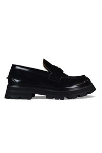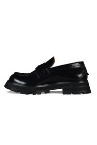 Alexander McQueen Seal loafers. Black leather. Embellished with a silver Seal patch. Round toe. Black oversized rubber sole. Made in Italy. Size Type: IT SKU: 683571WHZ851081 Our Products Are 100% Genuine. In All Cases We Stand By The Authenticity Of Every Product Sold On Our Site. All sales are final and we only accept returns for quality issue. Buyer is responsible for any import tax/duty if applicable.