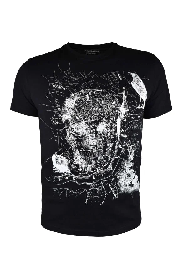 Black cotton T-shirt Alexander McQueen. White graphic print on front. Short sleeves. Round neck. Size Type: INT SKU: MN0463984QJZ590901 Our Products Are 100% Genuine. In All Cases We Stand By The Authenticity Of Every Product Sold On Our Site. All sales are final and we only accept returns for quality issue. Buyer is responsible for any import tax/duty if applicable.