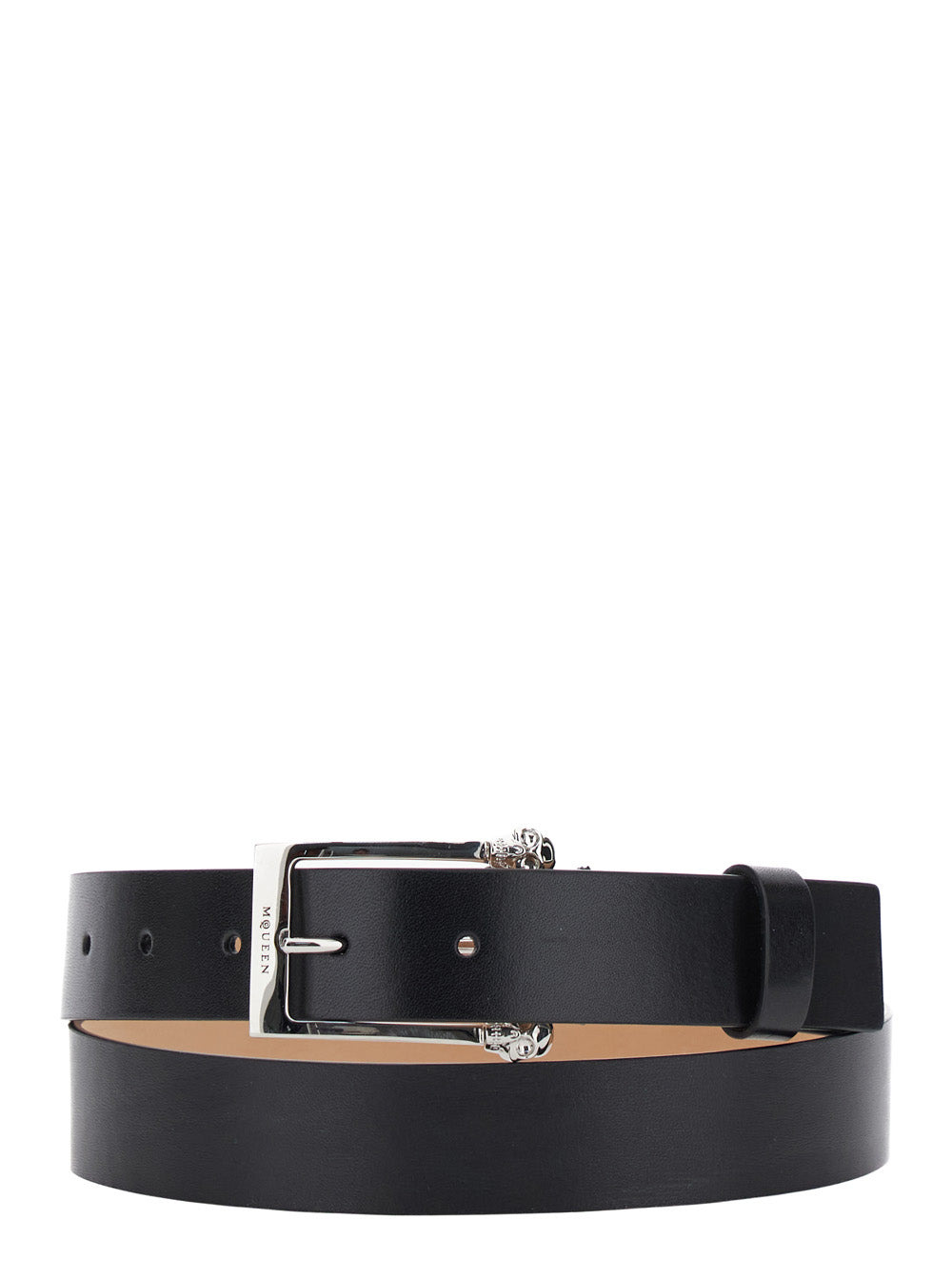 Alexander Mcqueen Men 'Twin Skull' Black Belt With Logo Detail On The Buckle In Leather Man