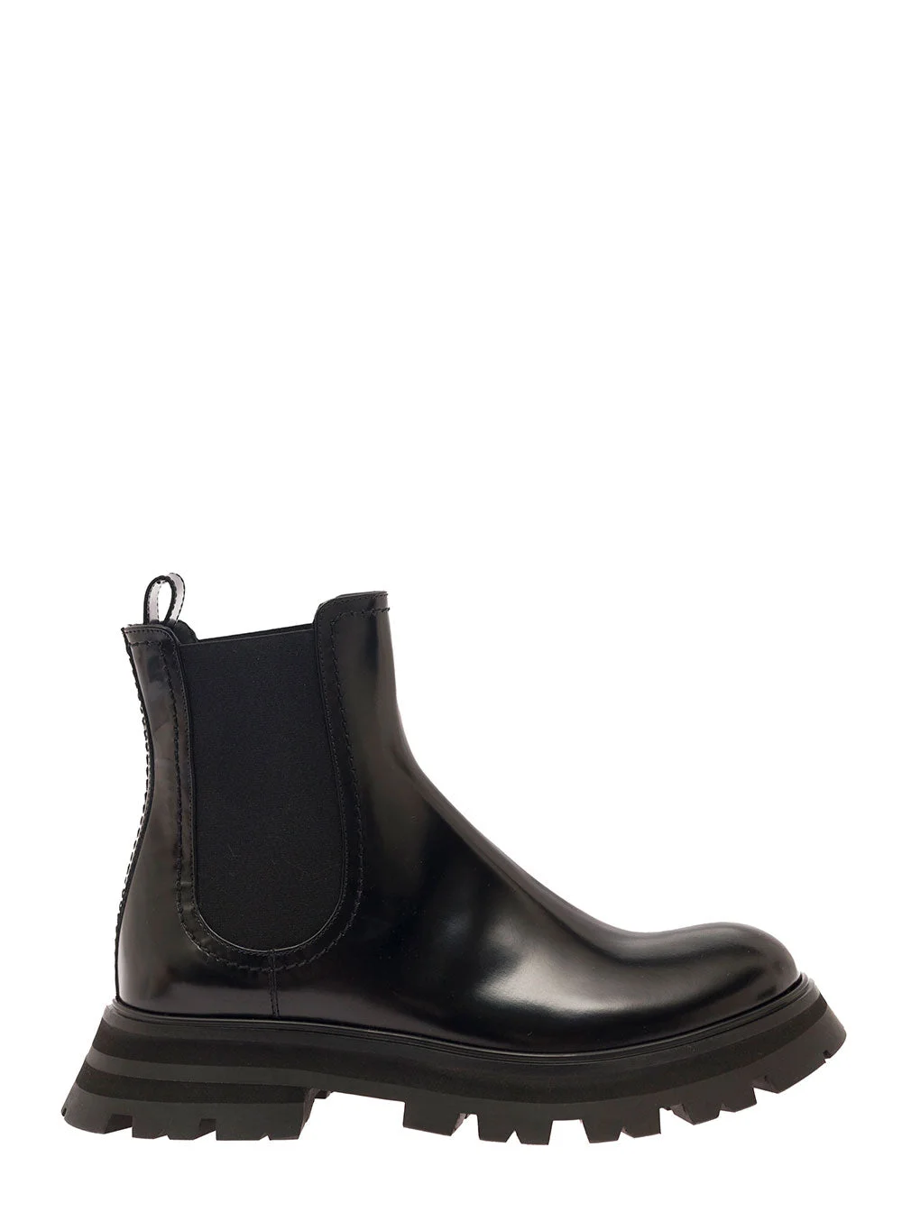 Alexander Mcqueen Women Black Chelsea Boots With Elastic Inserts In Smooth Leather Woman