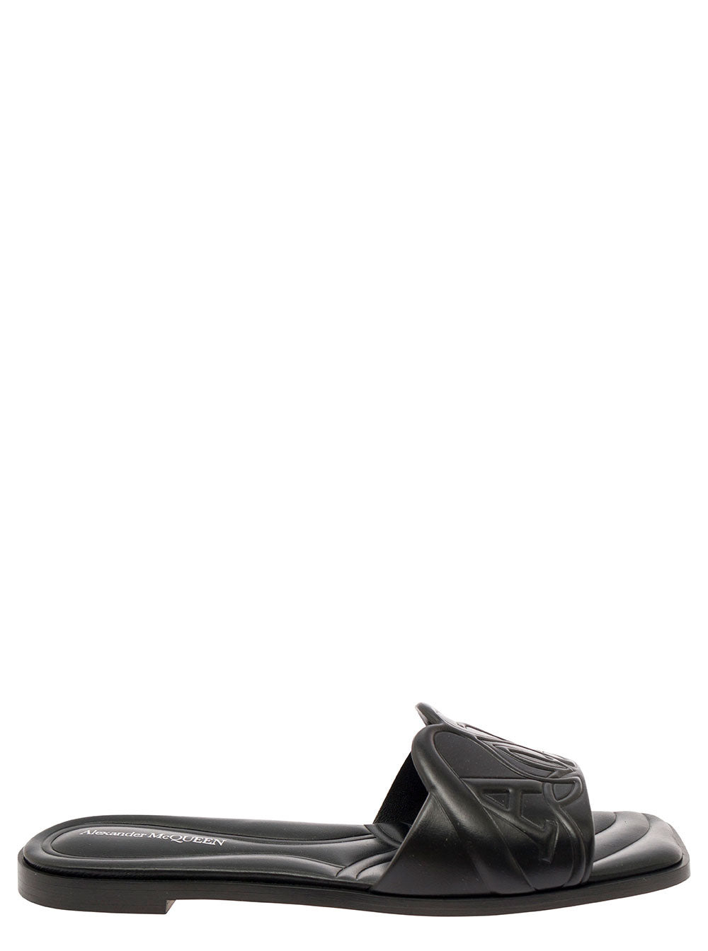 Alexander Mcqueen Women Black Quilted Sandals With Logo Motif In Leather Woman