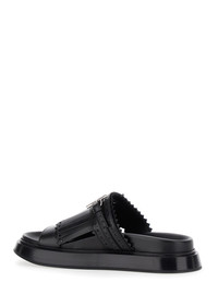 Alexander Mcqueen Women Black Sandals With Brogue T-Buckle Decorative Strap In Leather Woman