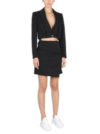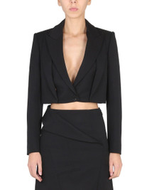 Women's Double Lapel Slashed Cropped Jacket in Black