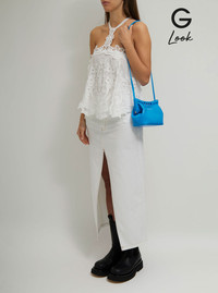 Handbag Curved structure Magnetic closure Adjustable shoulder strap Metallic accessories in brass with silver finishes Blue Leather Dimensions: 22,5x16x9 cm Handle drop: 45-65 cm SKU: 7759081BLLI4332 Our Products Are 100% Genuine. In All Cases We Stand By The Authenticity Of Every Product Sold On Our Site. All sales are final and we only accept returns for quality issue. Buyer is responsible for any import tax/duty if applicable.