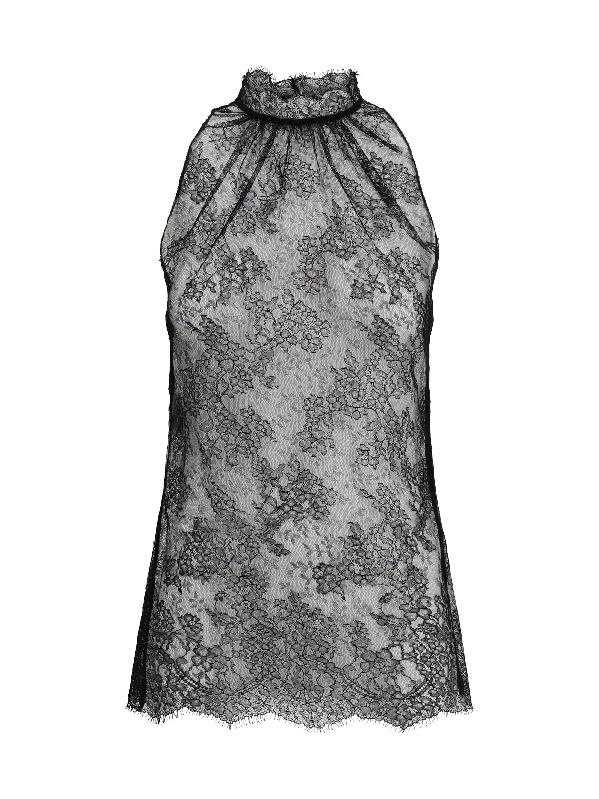 Alexander Mcqueen Women Sleeveless Black Lace Top