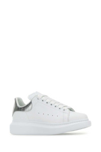Alexander Mcqueen Women White Leather Sneakers With Silver Leather Heel
