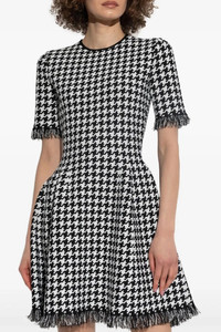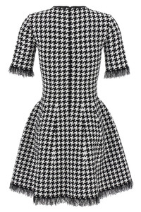 Jacquard fabric mini dress with houndstooth pattern, panier skirt, crew neck, short sleeves, back zip closure, fringes on the hem and sleeves. Color: White/Black Size & Fit: true to size fit Composition: 100% viscose Made in: Italy SKU: 829320Q1BDB1080 Our Products Are 100% Genuine. In All Cases We Stand By The Authenticity Of Every Product Sold On Our Site. All sales are final and we only accept returns for quality issue. Buyer is responsible for any import tax/duty if applicable.