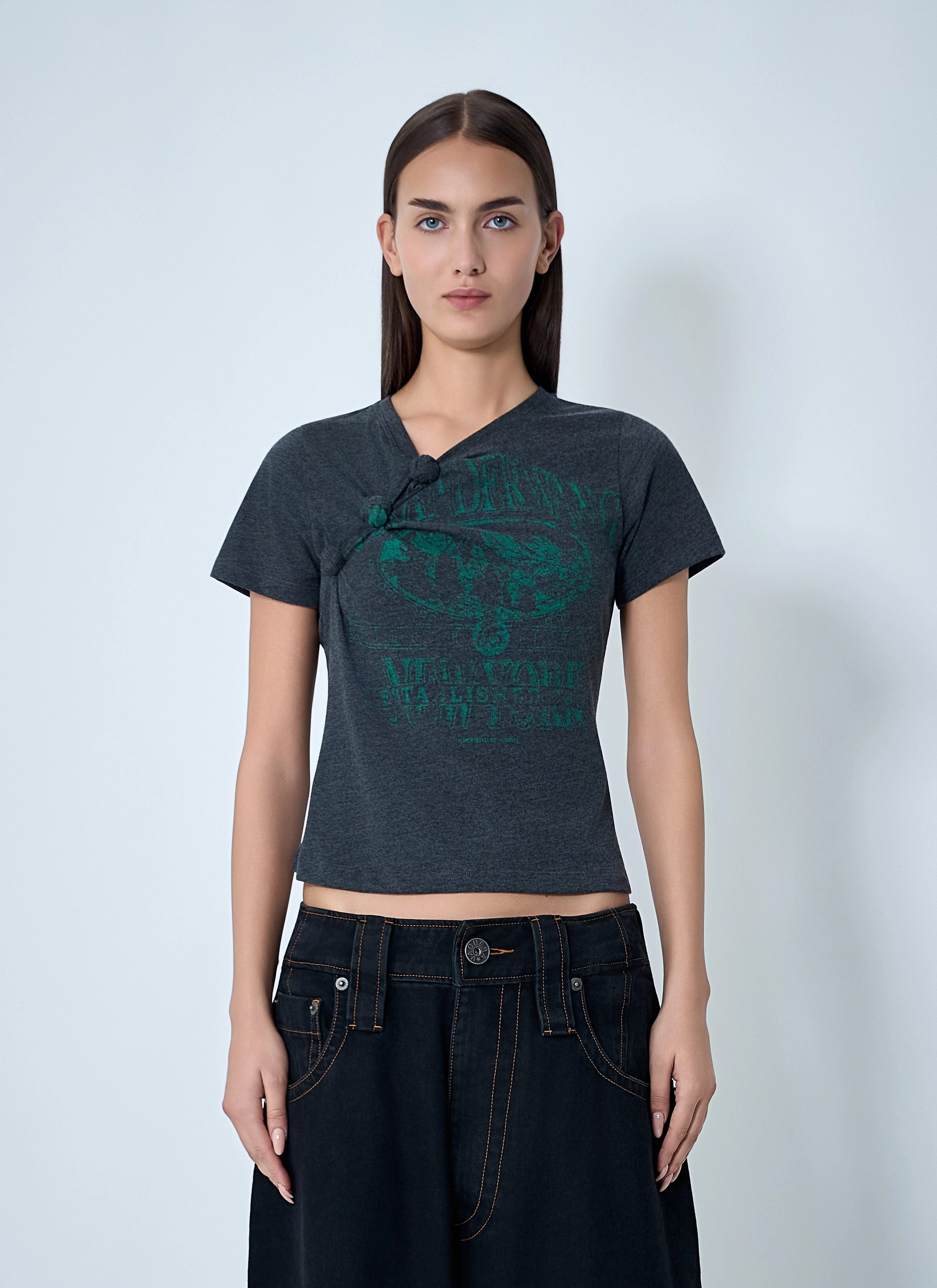 Logo motif T-shirt in cotton jersey with knotted detail. Assymetric neckline Short sleeves Front logo motif 50% Cotton, 50% Polyester. Machine wash cold 4CC4251121 001 SKU: 4CC4251121001 Our Products Are 100% Genuine. In All Cases We Stand By The Authenticity Of Every Product Sold On Our Site. All sales are final and we only accept returns for quality issue. Buyer is responsible for any import tax/duty if applicable.