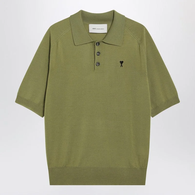 Ami Paris Ami De Coeur Matcha Green Wool Polo Shirt Men