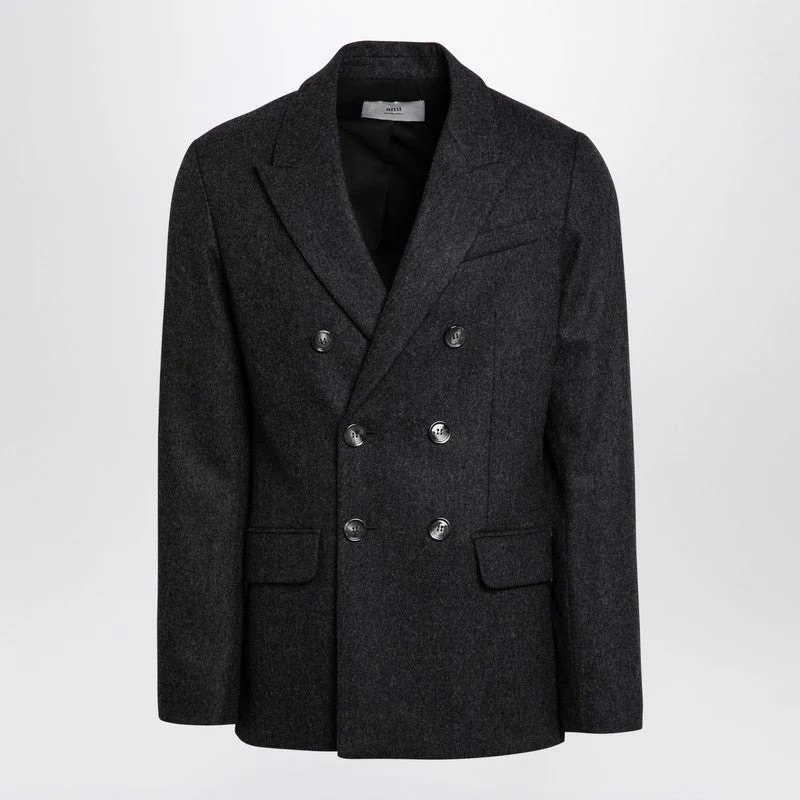Ami Paris Grey Wool Double-Breasted Jacket Men