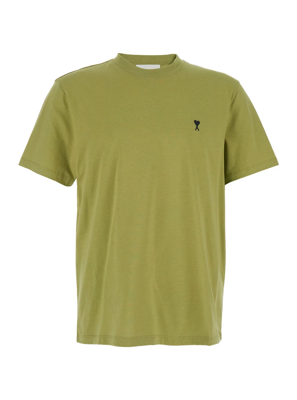 Ami Paris Men Green T-Shirt With Logo On Front In Cotton Man