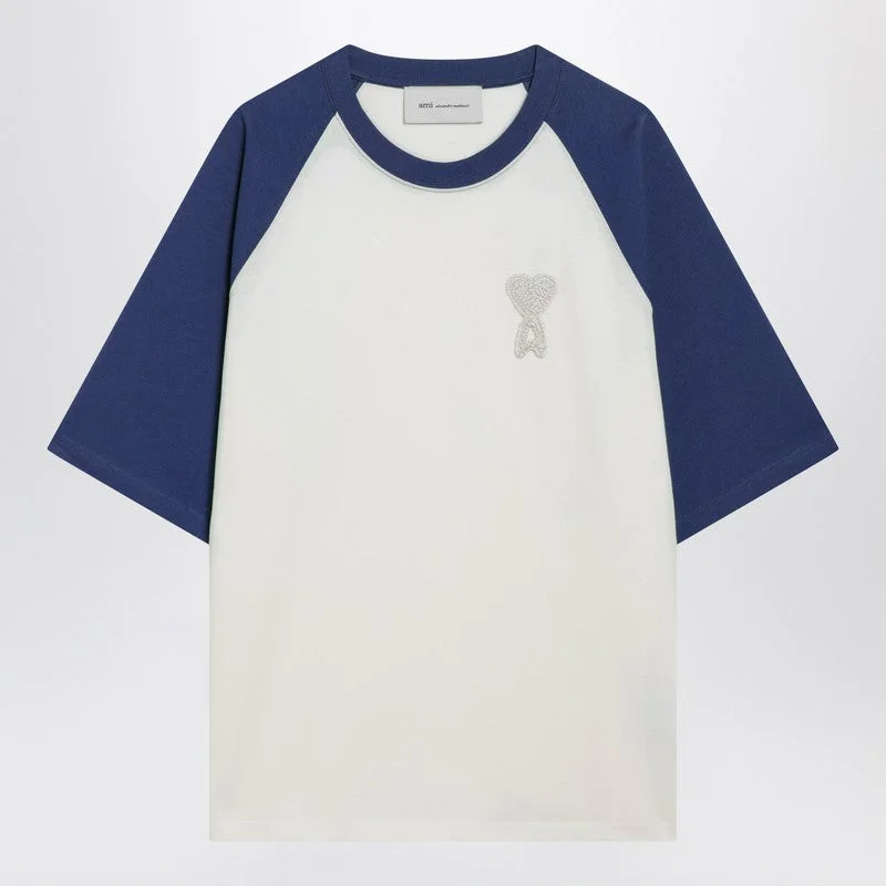 WHITE AND BLUE COTTON AMI DE COEUR KNITTED PATCH T-SHIRT