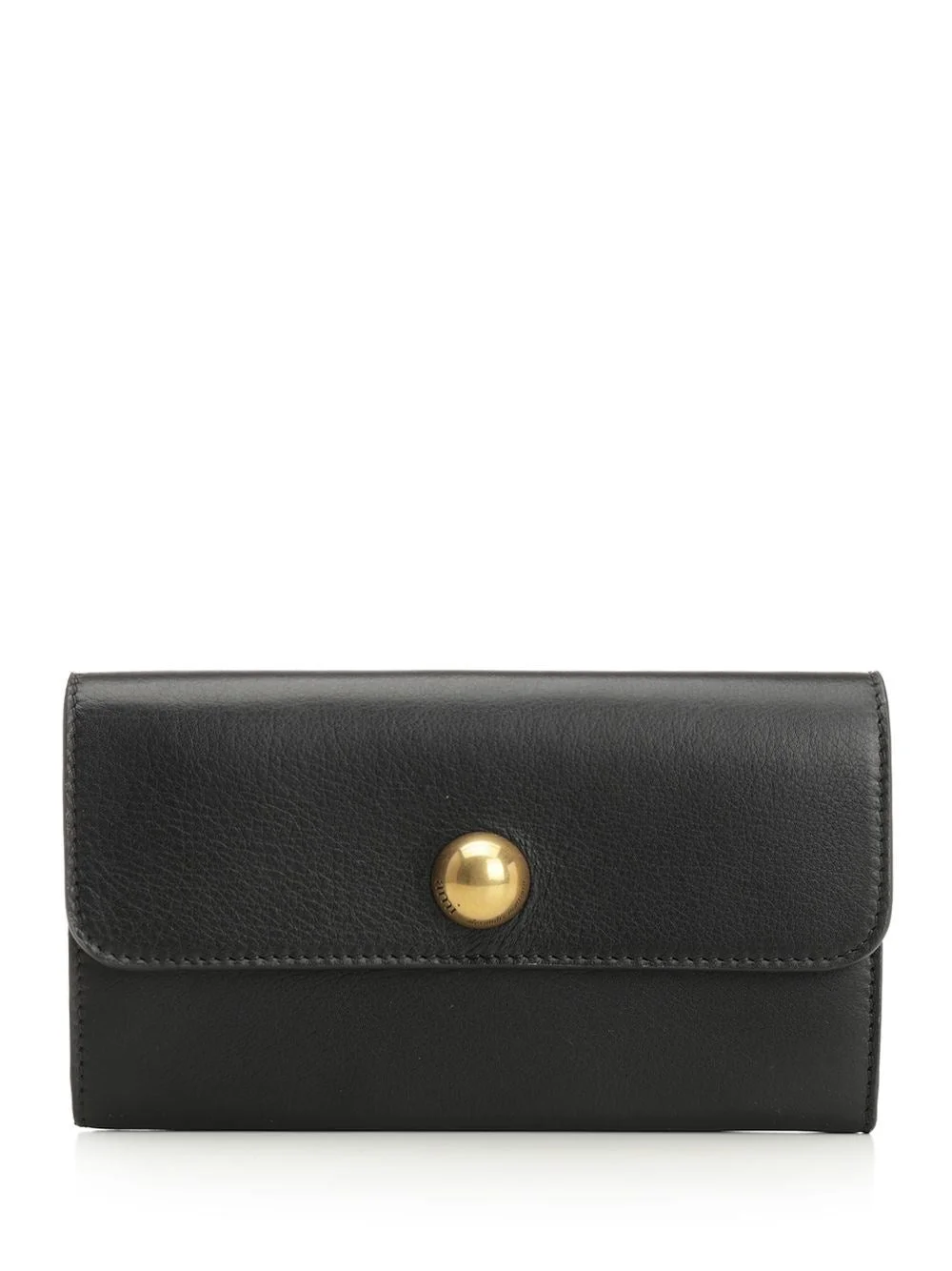 Ami's smooth calfskin "Carrousel" wallet features a snap button closure, vibrant brass-tone hardware, a central zipped coin pocket, a bill compartment, ten card slots and a front compartment, a metal half sphere with engraved "ami alexandre mattiussi" logo, and a cotton canvas lining. MAT PRINCIPALE:100% CUIR DE VEAU Made in: ES SKU: H25USL714AL0103001H25 Our Products Are 100% Genuine. In All Cases We Stand By The Authenticity Of Every Product Sold On Our Site. All sales are final and we only accept returns for quality issue. Buyer is responsible for any import tax/duty if applicable.