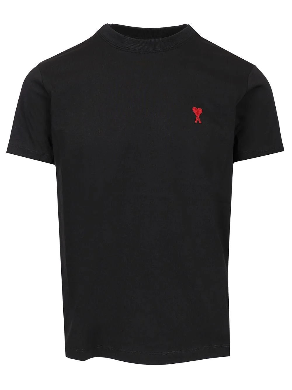 Black T-Shirt with Ami De Coeur Embroidery on the Front in Cotton Woman