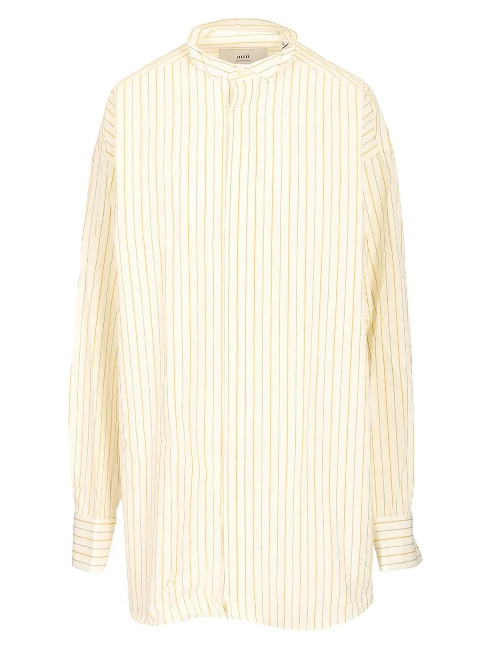 Oversized cotton shirt by Ami with a striped pattern, featuring a pointed collar, a hidden button placket on the front, horizontal striped cuffs and collar and mother-of-pearl buttons. MAT PRINCIPALE:100% COTON Made in: BG SKU: FSH181CO01091891 Our Products Are 100% Genuine. In All Cases We Stand By The Authenticity Of Every Product Sold On Our Site. All sales are final and we only accept returns for quality issue. Buyer is responsible for any import tax/duty if applicable.